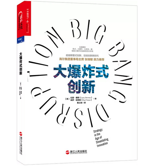 在《大爆炸式创新》中,拉里·唐斯和保罗·纽恩斯分析了大爆炸式颠覆的起源,探讨了其中蕴含的经济学原理,并且对大爆炸式颠覆进行了一番剖析。他们认为创新的新生命周期由奇点、大爆炸、大挤压、熵四个重要的阶段组成,这个理论将有助你及时发现潜在的颠覆。而且他们提出了12大规则,将帮助你保护自己的市场,自主推出颠覆,并且及时退出战场。