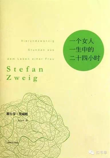 《一个女人一生中的二十四小时》——《一个女人一生中的二十四小时》是茨威格的代表作之一,与《一个陌生女人的来信》齐名。故事发生在一座海滨旅馆里。一位与丈夫子女前来度假的女性与刚刚相识的男子私奔,引得旅客们议论纷纷。年逾花甲的C太太深受触动,向作者吐露了自己二十年前的一段往事。当时,她刚满四十岁,由于丈夫去世,儿子已经自立,她对人生无所祈求,便靠游览观光打发光阴。一天,她在赌城蒙特卡罗遇到一个沉迷赌博到山穷水尽的年轻人。出于同情,她伸出援手,却由于瞬间激情的驱使而失身于这个她连姓名也不知道的男人。 C太太挽救年轻男子、最终失败的故事发生在二十四小时里,这不寻常的二十四小时几乎改变了一个女人的命运。她像前去救火的人,几乎自焚。