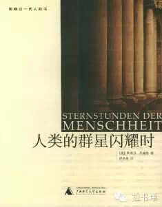 《人类群星闪耀时》——涌动着匪徒、探险家、叛乱者兼英雄血液的巴尔沃亚成为第一个看到太平洋的欧洲人;仅仅一秒钟的优柔寡断,格鲁希元帅就决定了拿破仑在滑铁卢之战中失败的命运;七十多岁的歌德像情窦初开的男孩爱上了十几岁的少女,求婚未遂之后,老人在萧萧秋色中一气呵成地创作了《玛丽恩巴德悲歌》;流亡国外的列宁不顾自己的荣辱毁誉,乘坐一列铅封的火车取道德国返回俄国,十月革命就这样开启了历史的火车头……